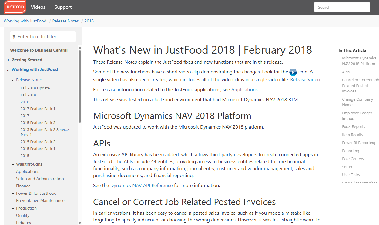 Release notes for the JustFood product that is on the Business Central platform.Note: The help version is obsolete and the video links are no longer up-to-date.